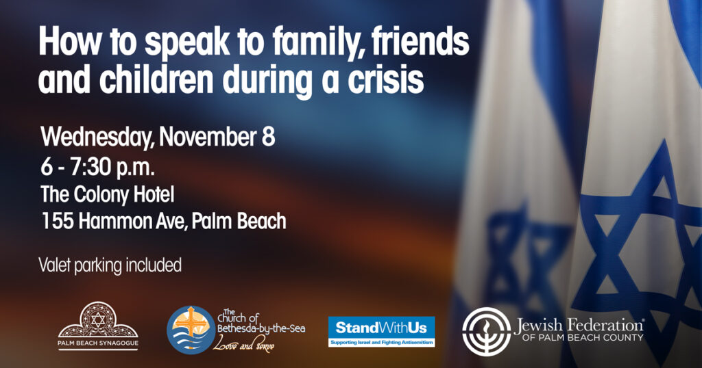 Ronni Ticker: Federation’s Director of Family Engagement will provide guidance on how to talk to our children about the ongoing conflict in Israel and will offer age-appropriate insights and resources to help parents navigate these important conversations.