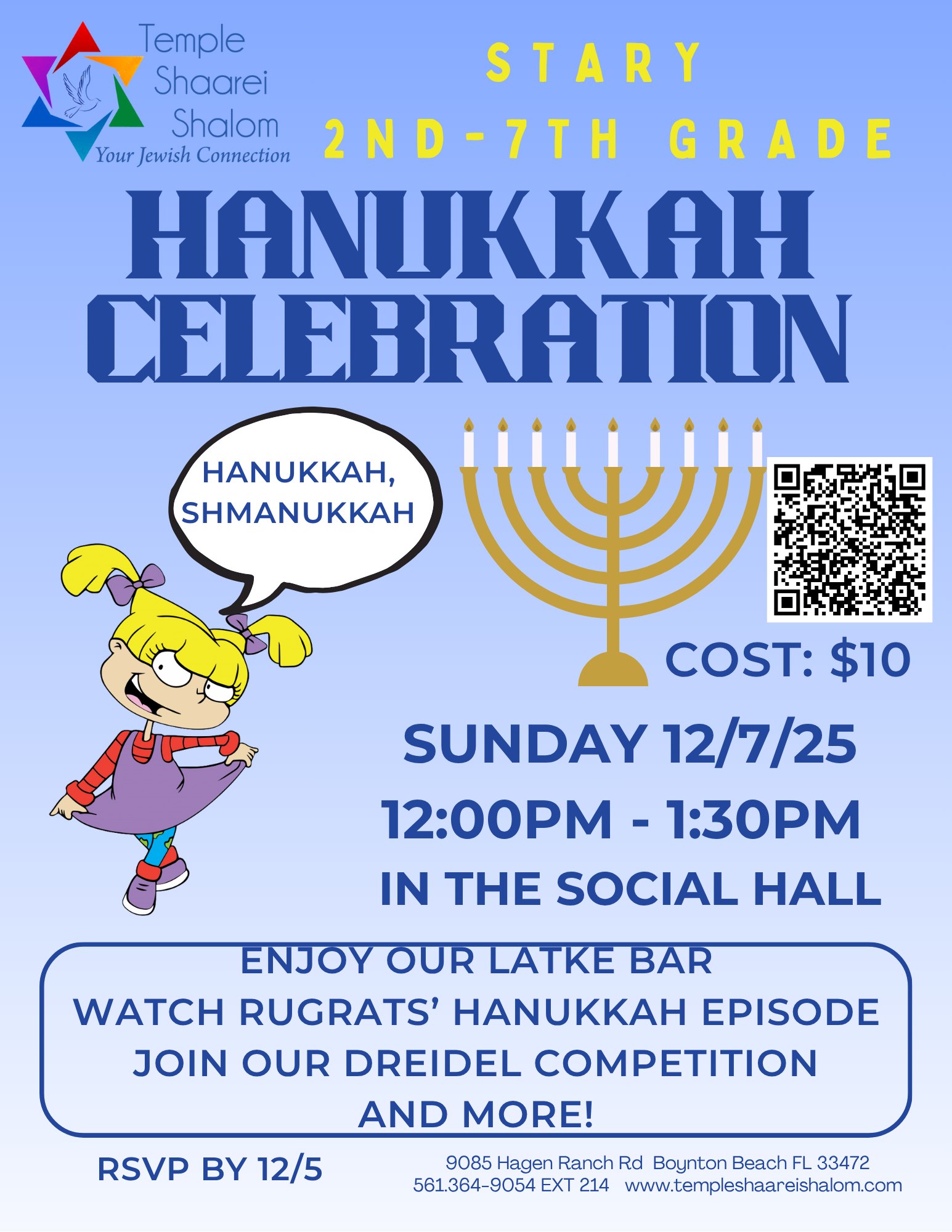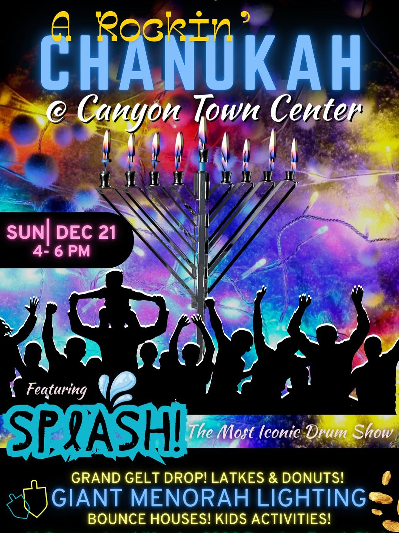 Coloring pages, Hanukkah blessings, directions for playing dreidel and the story of Hanukkah.